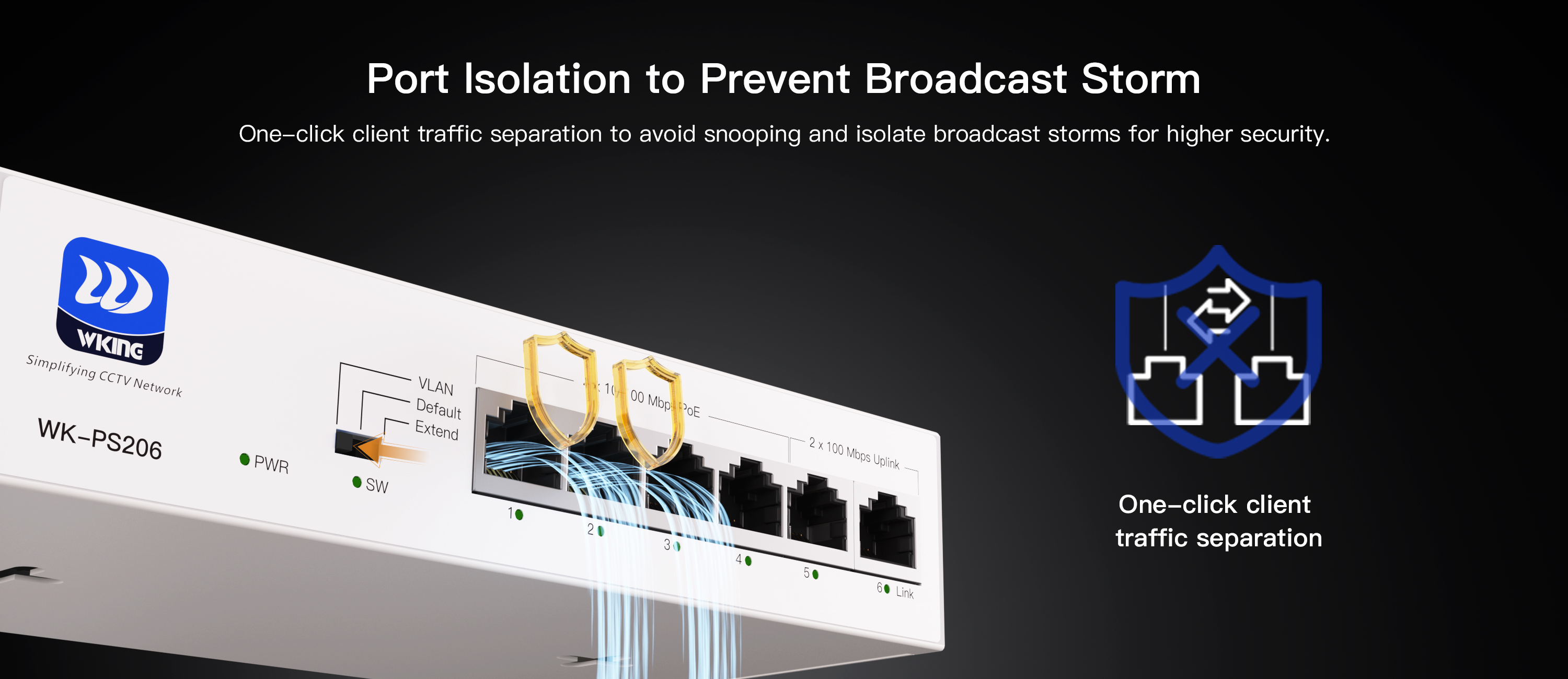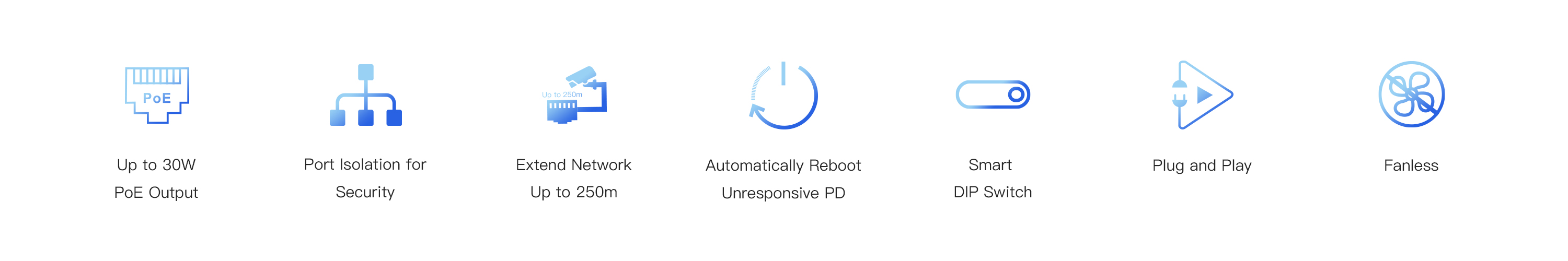 ● Support 250m Extend, Port VLAN, and PD Alive function on DIP Switch