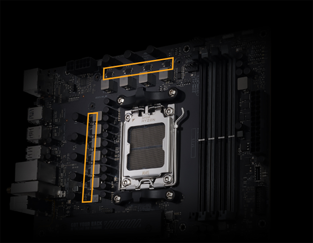 Askeri sınıf sertifikalı TUF bobinleri, CPU'ya sağlam güç sağlayarak sistem kararlılığını artırır.