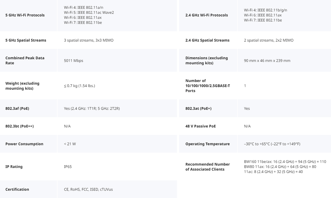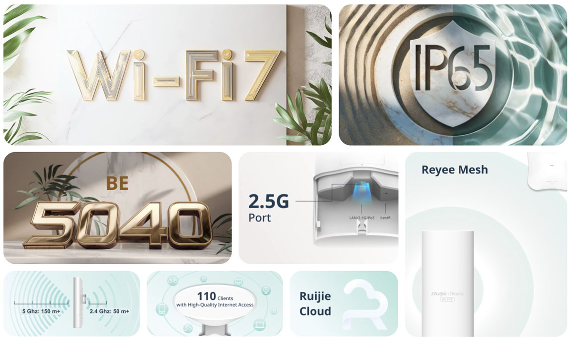 Değerlendirme için bayi girişi yapmanız gereklidir.The RG-RAP72Pro-OD is a versatile Wi-Fi 7 access point designed for both indoor and outdoor environments. This device delivers exceptional wireless performance with a combined peak data rate of up to 5,011 Mbps, ensuring seamless connectivity for high-demand applications.